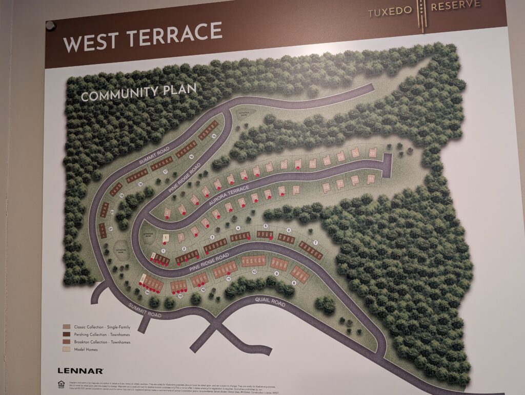 While the full plan is expansive, several of the initial neighborhoods include West Terrace, The Bluffs, Mountain Lake, and The Village at Tuxedo Reserve.